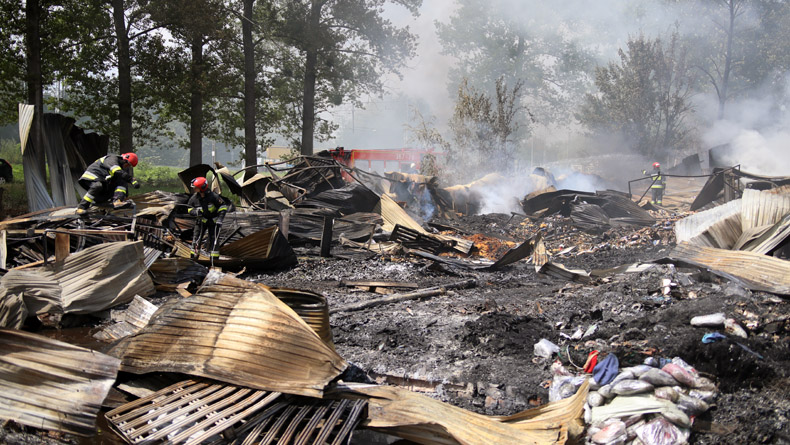 Pożar magazynów przy ul.Batorego wybuchł w nocy 24 lipca. Ogień objął cały budynek o powierzchni ponad 800 mkw. W magazynie znajdowały się różnego rodzaju materiały – od artykułów spożywczych po beczki z substancjami ropopochodnymi oraz innymi, których nie udało się zidentyfikować. Zapaleniu uległy również samochody ciężarowe zaparkowane bezpośrednio przy palącym się obiekcie budowlanym. Działania strażaków polegały na ewakuacji mienia, wykonaniu dostępu do palącego się magazynu oraz podaniu prądów gaśniczych wody.
