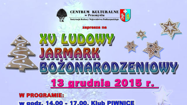 W dniu 13 grudnia w Centrum Kulturalnym w Przemyślu odbędzie się XV Ludowy Jarmark Bożonarodzeniowy. Będzie to okazja do nabycia świątecznych ozdób wykonanych przez artystów ludowych oraz do obejrzenia widowiska.