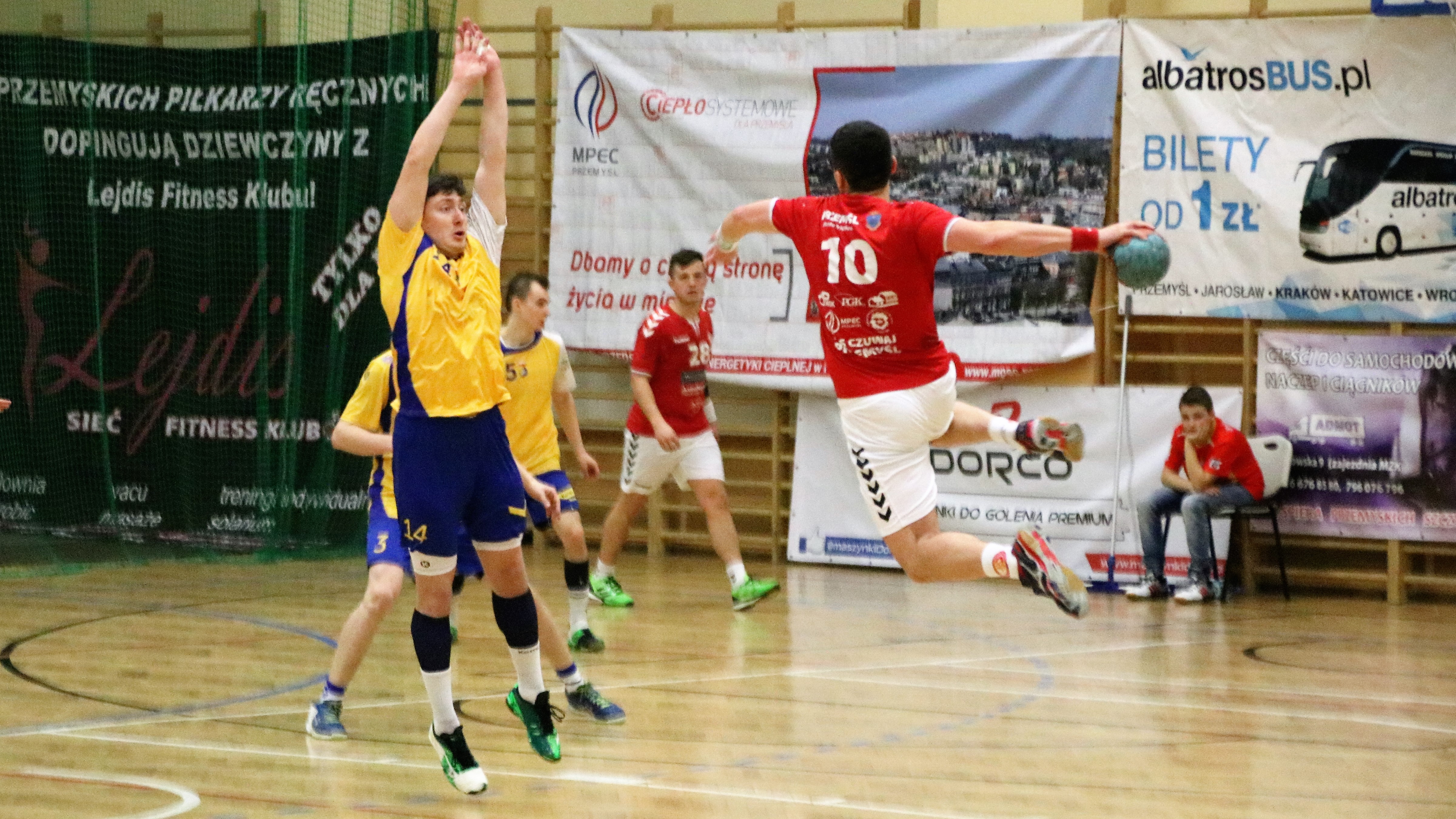 W pierwszym kwadransie meczu punkty rozkładały się równo po obu stronach a szala zwycięstwa przechylała się raz na jedną, raz na drugą stronę. Wreszcie w dwudziestej minucie Paweł Puszkarski rozpoczął serię dziewięciu bramek dla Harcerzy przy jedynie dwóch trafieniach gości. To dało Przemyślowi przewagę 8 bramek po 30 minutach. Czuwaj schodził na przerwę przy wyniku 19:11. Przed samym końcem pierwszej połowy meczu miało miejsce przykre zajście. Zawodnik gości, Jakub Bulski, faulował umyślnie Pawła Puszkarskiego za co otrzymał czerwoną kartkę. Na szczęście zdenerwowanie w obu zespołach udało się opanować i nie doszło do poważniejszych incydentów.