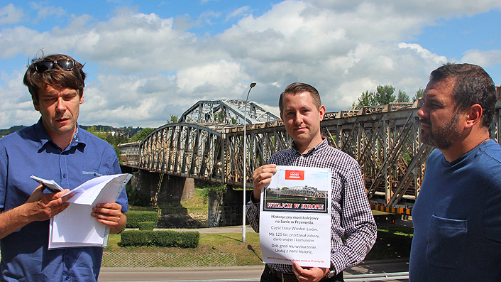 Krystian Rachwał ze Stowarzyszenia Kaponiera, poinformował, że jest w posiadaniu informacji, że most na Sanie nie spełnia warunków technicznych i musi zostać wyburzony, a na jego miejscu planuje się budowę nowego mostu w formie architektonicznej nie mającej nic wspólnego z obecną, a tym samym z historią miasta Przemyśla. – W związku z czym wspólnie z Kongregacją postulujemy, aby zachować wizerunkowy symbol miasta w postaci starej konstrukcji architektonicznej – mówił Krystian Rachwał.