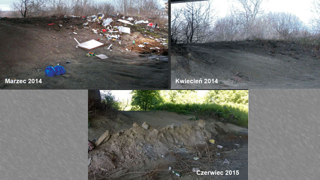 Jednakże kilka tygodni temu otrzymaliśmy kolejne zgłoszenie, że czystość pod mostem nie bardzo chce zapanować na wieki, i nowe śmietnisko zaczyna z wolna rozkwitać na miejsce starego. Pojechaliśmy sprawdzić. Sytuacji, jaką zastaliśmy w czerwcu 2015 roku, na pewno do tej z przed roku porównywać nie można. Jednak faktem jest, śmieci zaczęły tu wracać. Pojawiła się także, trudniejsza do usunięcia hałda gruzu i ziemi, z pewnością z któregoś placu budowy. Są także widoczne ślady walki o czystość, jaką toczą zapewne mieszkańcy pobliskich domów, którzy porozrzucali wokół prowadzącej pod mostem drogi gałęzie i konary, które mają utrudnić zatrzymanie samochodów tym mieszańcom miasta, mającym jego czystość w poważaniu.