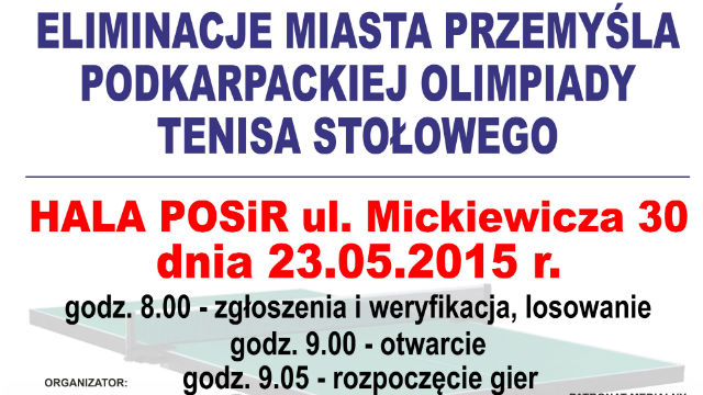 W najbliższą sobotę, w hali odbędą się eliminacje miasta Przemyśla do Podkarpackiej Olimpiady Tenisa Stołowego.