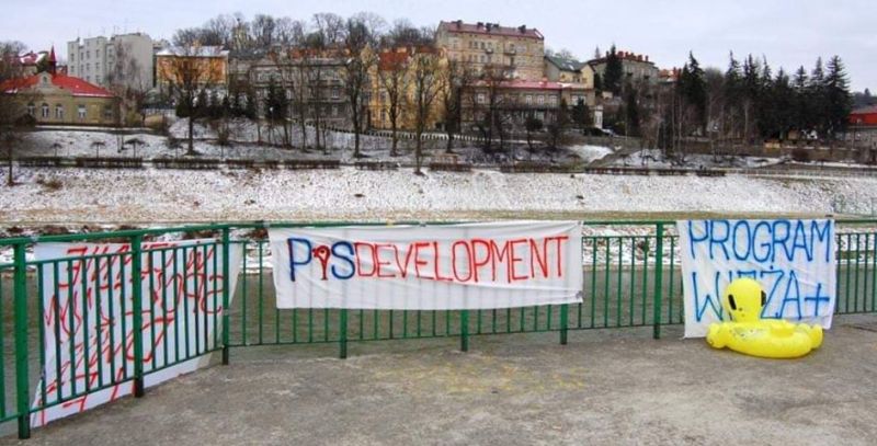 Rebelianty Podkarpackie zorganizowały w niedzielę happening pod kryptonimem Naród Prezesowi. W prześmiewczy sposób uczestnicy wydarzenia skomentowali sprawę budowy wieżowców przy ulicy Srebrnej w Warszawie, w którą – według Gazety Wyborczej – ma być zaangażowany prezes PiS Jarosław Kaczyński.