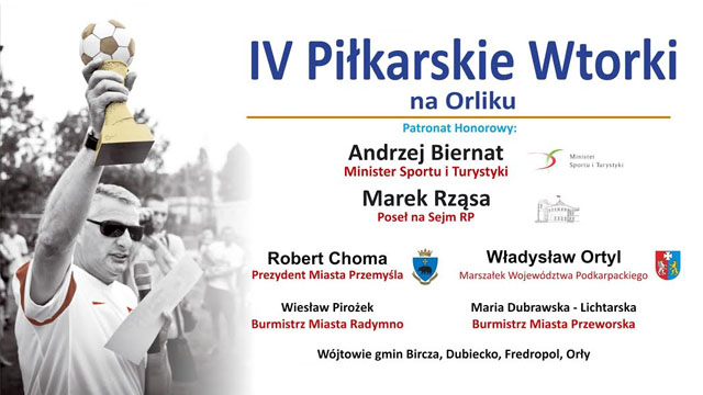 „IV Piłkarskie wtorki na Orliku” to turniej piłkarski, który ma na celu zorganizowanie podczas wakacji cyklicznych meczy piłkarskich odbywających się na boisku Orlik 2012 w Przemyślu oraz na terenie powiatów przemyskiego, jarosławskiego oraz przeworskiego. Przedsięwzięcie skierowane jest szczególnie do dzieci oraz młodzieży, pochodzących z rodzin będących w trudnej sytuacji materialnej czy życiowej, zagrożonych patologiami społecznymi.