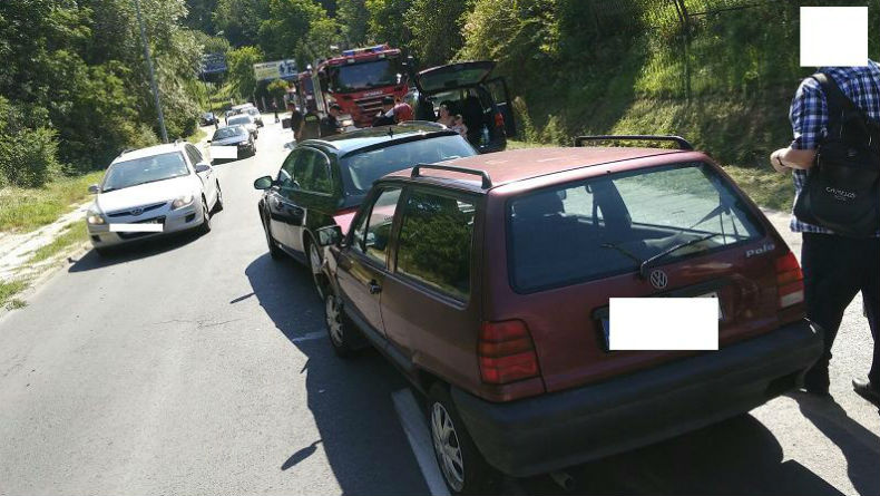 W poniedziałek, 31 sierpnia br. tuż przed godz. 10 na ul. Sanockiej w Przemyślu 60- letni mieszkaniec powiatu przemyskiego kierujący volkswagenem sharanem zatrzymał się za kolumną aut, które stały za traktorem koszącym trawę wzdłuż ulicy. W pewnym momencie w volkswagena wjechał kierujący audi A4, 29-letni mieszkaniec powiatu przemyskiego, a w niego następnie uderzył 65-letni kierujący volkswagenem polo, który również nie zachował bezpiecznej odległości i nie wyhamował przed poprzedzającym pojazdem.