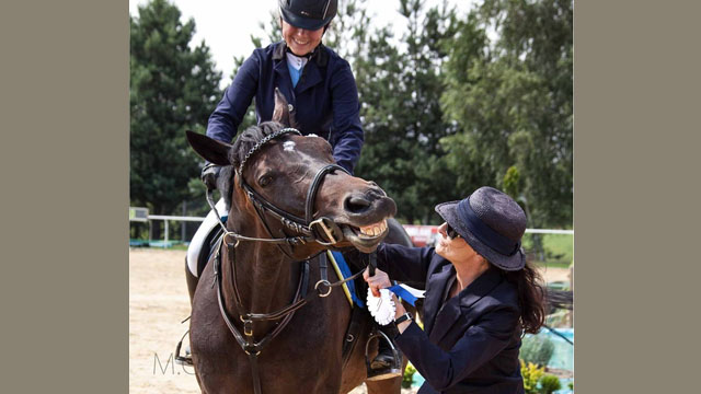 Komentarz Mariana Gduli, autora fotografii przedstawiającej uhonorowanie Edyty Wajdy – Na blisko sto zawodników zajęcie czwartego miejsca, to bardzo dobry wynik, jednak koń wyraźnie protestuje, ponieważ chciał stać na podium