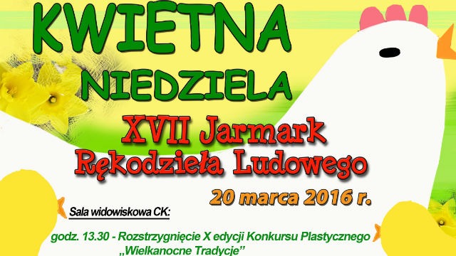 W dniu 20 marca Centrum Kulturalne w Przemyślu zaprasza na XVII Jarmark Rękodzieła Ludowego „KWIETNA NIEDZIELA”.