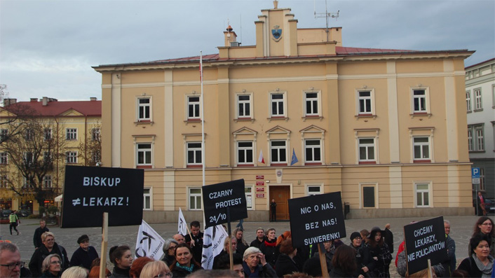 Powtórzony protest zawdzięczamy naszej kochanej władzy, która niestety dalej nie traktuje nas poważnie i jedną ręką daje, a drugą chce zabrać. Zebraliśmy się tutaj przede wszystkim żeby zaprotestować przeciwko językowi pogardy wobec kobiet jaki przetoczył się przez nasz kraj po pierwszym czarnym proteście. To niebywałe, że osoby publiczne w ten sposób wyrażają się o kobietach, które wyszły na ulicę zaprotestować i wyrazić swoje zdanie, bo niestety ulica została ostatnim miejscem, gdzie możemy powiedzieć co czujemy – mówiła organizatorka akcji w Przemyślu Anna Mizgała – Nie możemy decydować o tym – przynajmniej takie są zakusy dalej – czy chcemy czy nie chcemy urodzić dziecko chore, zdeformowane. Pomoc państwa na dzień dzisiejszy jest szczątkowa i nie zanosi się żeby uległo to zmianie, gdyż w budżecie na przyszły rok zostały obcięte środki na pomoc socjalną, a rząd zapewniał, że będzie się zajmował osobami niepełnosprawnymi. Ich działania są sprzeczne, dlatego się tutaj zebraliśmy. Powinniśmy konsekwentnie pilnować naszych władców żeby nie próbowali w żaden sposób tylnymi drzwiami zmienić naszego prawa.