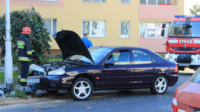 Na ulicy Glazera doszło do zdarzenia drogowego. Kierowca samochodu uderzył w latarnię.