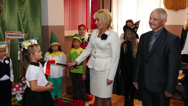 W dniu 23 października w Zespole Szkół w Hermanowicach odbyło się podwójne święto: 7. Rocznica nadania szkole imienia księdza Jana Twardowskiego oraz uroczyste pasowanie pierwszoklasistów na ucznia.