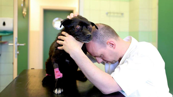 Pies został znaleziony tydzień temu, w Maćkowicach. W wyniku ciężkiego pobicia ma uszkodzoną wątrobę i płuco, a jego oczy wypadły z oczodołów. Pies resztkami sił dowlókł się do prywatnej posesji, gdzie wpadł do piwnicy. Tam znalazła go pewna kobieta. Życie psu uratowali weterynarze z Lecznicy dla Zwierząt „Ada”, pod opieką których po mału odzyskuje on teraz siły.