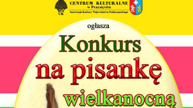 Centrum Kulturalne w Przemyślu ogłasza konkurs na pisankę wielkanocną. Do udziału w konkursie zaprasza osoby dorosłe oraz dzieci i młodzież w kategorii „Mistrz – Uczeń”, wykonujące pisanki tradycyjnymi technikami: batikową, drapaną oraz współczesną, jednak nawiązującą do tradycyjnego wzornictwa naszego regionu.