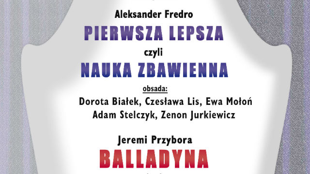 Jako pierwsza zaprezentuje się Grupa „Baccalaureus” z Jarosławia. Aktorzy zaprezentują komedię „Pierwsza lepsza czyli nauka zbawienna” na podstawie jednoaktówki Aleksandra Fredry oraz „Balladynę” – widowisko teatralno – muzyczne na podstawie tekstów Jeremiego Przybory.