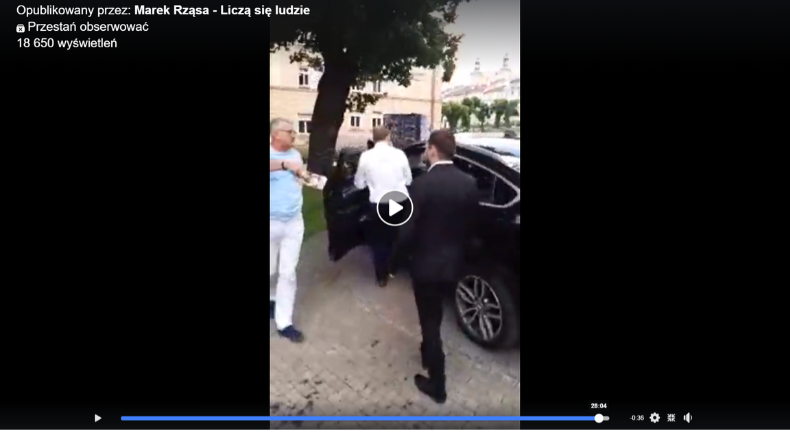 Poseł Platformy Obywatelskiej ustawił się za uczestnikami konferencji, wznosząc do góry – trzymaną w rękach – gazetę Fakt, która na pierwszej stronie sugeruje, że prezydent Duda ułaskawił pedofila. Konferencja szybko przekształciła się niezbyt uprzejmą wymianę zdań pomiędzy Z. Ziobro i M. Rząsą. Minister, który przyjechał do Przemyśla w zupełnie innym celu, musiał odpierać zarzuty Faktu i odnosić się do nowej sprawy pedofilskiej.