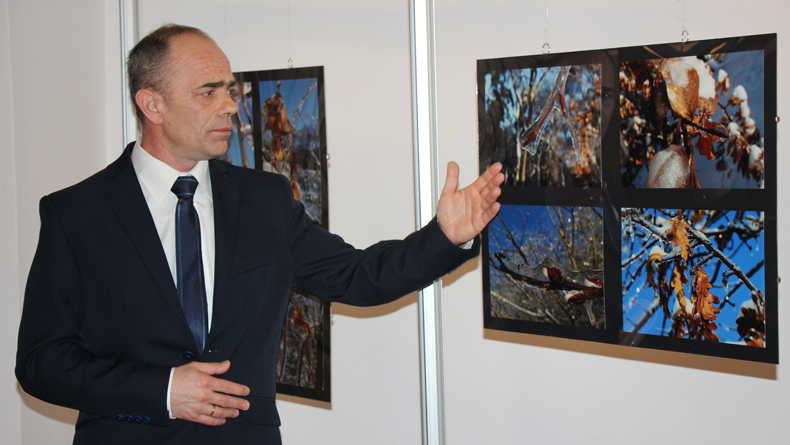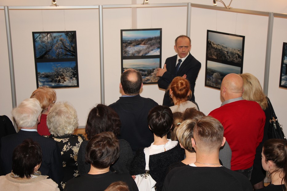 Pierwszym blokiem jest spacer po miejscach, które wszyscy przemyślanie bardzo dobrze znają. Od najmłodszych lat wybierają się na Zamek, idą do altanki, dochodzą do wzgórza Trzech Krzyży i idą na Zniesienie, ostatnim elementem spaceru jest Kopiec Tatarski. Drugi blok poświęcony jest detalom. Wcześniej pokazywałam detale uliczne, niedawno sakralne, a teraz detale przyrodnicze. Te zdjęcia powstały dokładnie 5 lat temu, gdy było dość nietypowe zjawisko atmosferyczne – padał deszcz przy kilkustopniowym mrozie i stworzył swego rodzaju lodowe kryształy, rzeźby lodowe. – powiedział podczas niedzielnego wernisażu autor wystawy Piotr Michalski.