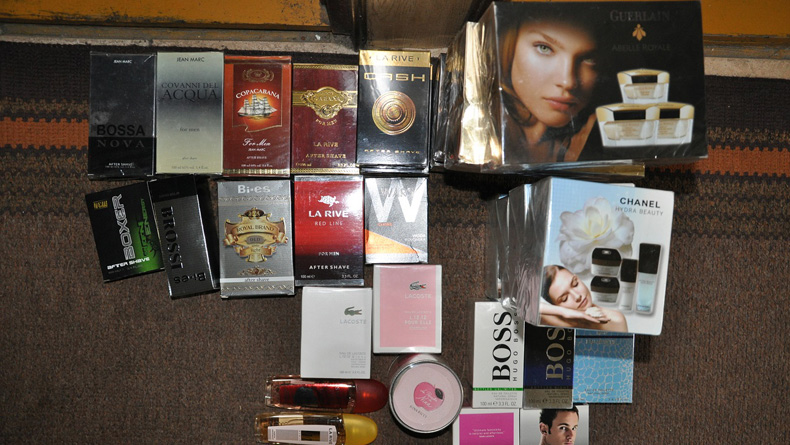 W wyniku przeszukania ujawniono ponad 3 tysiące paczek nielegalnych papierosów, 42 butelki alkoholu różnych marek niewiadomego pochodzenia, kilkanaście opakowań podróbek perfum i zestawów kosmetycznych znanych światowych marek.