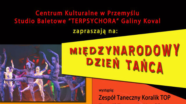 Centrum Kulturalne w Przemyślu i Studio Baletowe „Terpsychora” zapraszają na Międzynarodowy Dzień Tańca, którego obchody odbędą się 29 kwietnia o godzinie 17:30 w sali widowiskowej CK.