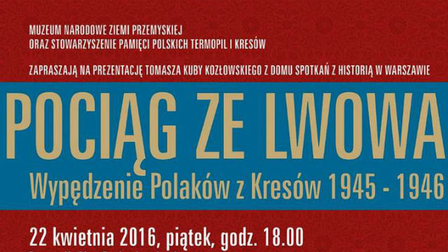 W piątek, 22 kwietnia, o godz.18 w Muzeum Narodowym Ziemi Przemyskiej odbędzie się prezentacja Tomasza Kuby Kozłowskiego z Domu Spotkań z Historią w Warszawie „Pociąg ze Lwowa. Wypędzenie Polaków z Kresów 1945-1946”.