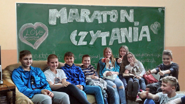 Uczniowie „Czternastki” wybrali wspólnie książkę do czytania podczas „Maratonu”. Wybór padł na lekturę „Baśniobór” Brandona Mulla. Przez wszystkie lekcje, nauczyciele klas IV-VI czytali uczniom kolejne rozdziały „Baśnioboru”. W czytaniu pomagali również uczniowie starszych klas próbując swoich sił w głośnym i wyraźnym czytaniu. Akcja powiodła się w stu procentach, dając satysfakcję słuchającym i czytającym.