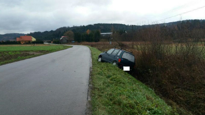 Pijana matka, jadąc z dwójką dzieci, wjechała do rowu