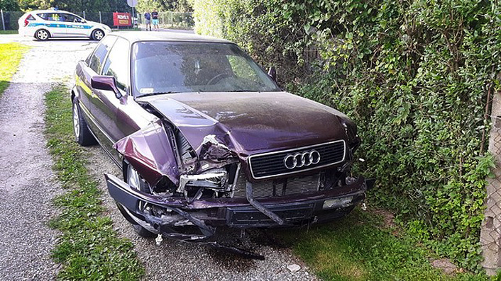 Nietrzeźwy kierowca wjechał samochodem w ogrodzenie