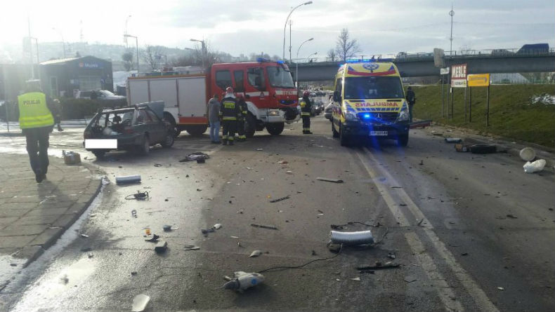20-letni kierowca bmw jechał wraz z trzema pasażerami w wieku 19 – 22 lat. W wyniku zderzenia 62-letni kierowca poloneza z urazami klatki piersiowej został przewieziony do szpitala. Mężczyzna po badaniach został zwolniony.