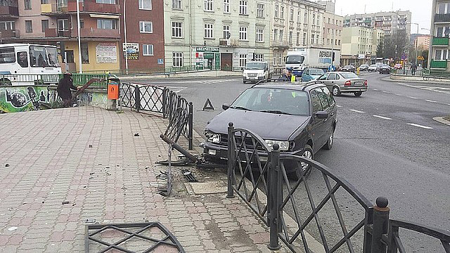 Do zdarzenia doszło około godz. 12. Przybyli na miejsce funkcjonariusze z wydziału ruchu drogowego ustalili, że 48 letni kierowca przy skręcaniu w prawo nie zachował ostrożności i tracąc panowanie nad samochodem wjechał w barierkę. Na szczęście w tym momencie nikt nie przechodził chodnikiem.